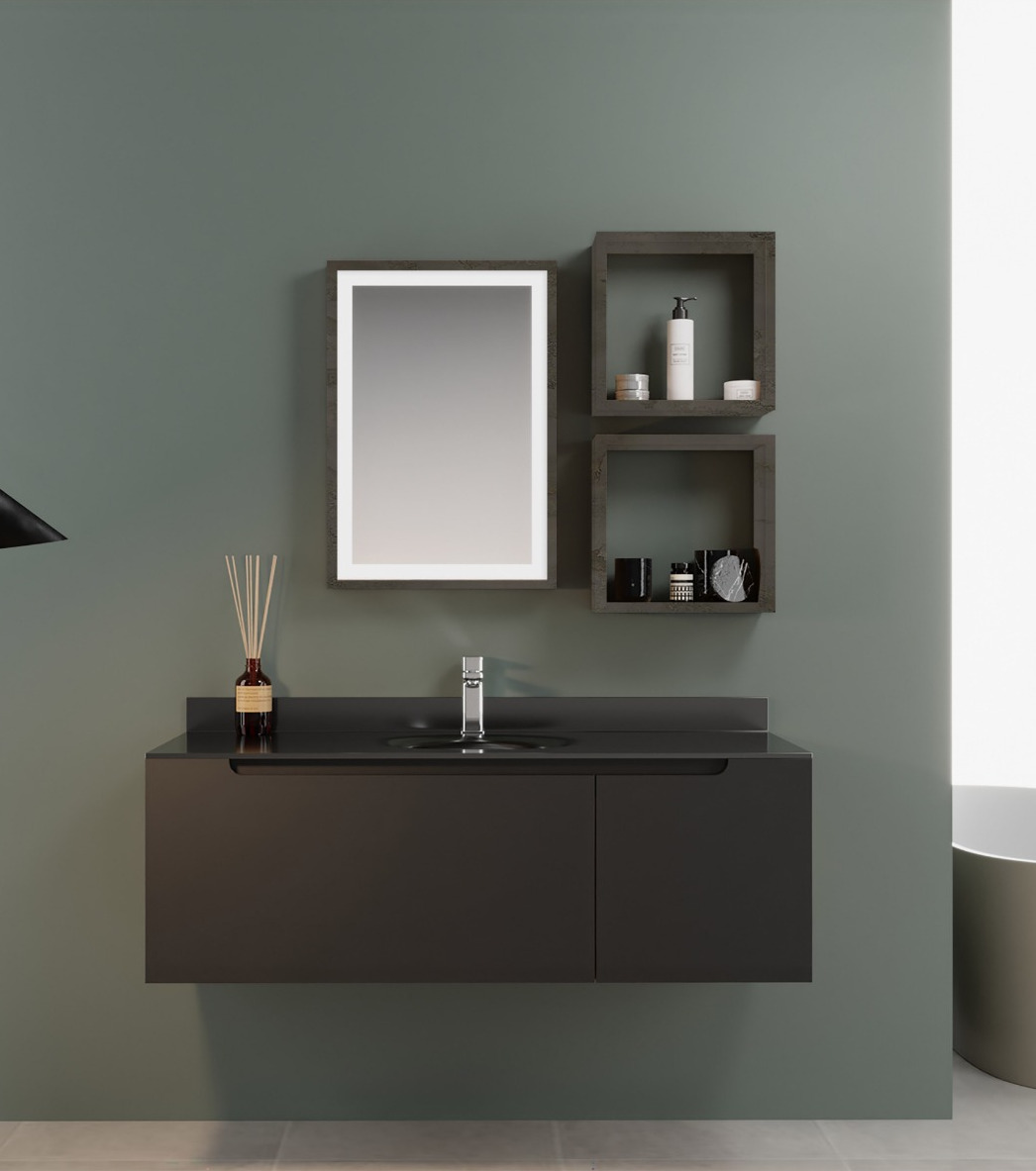 - Экологическое зеркало с высоким сопротивлением, частично открывающийся ящик с плавным закрыванием, внутреннее светодиодное освещение