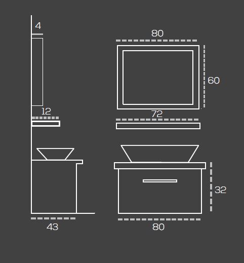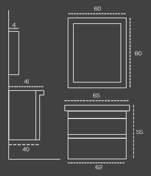 - Зеркало: ДЛИНА: 80 cm ВЫСОТА: 60 cm ГЛУБИНА: 4 cm