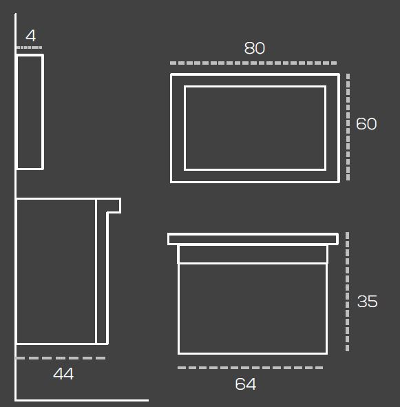 - Нижний боковой модуль: ДЛИНА: 64 cm ВЫСОТА: 35 cm ГЛУБИНА: 44 cm
